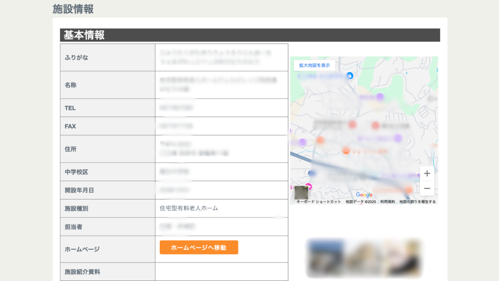 ■有料老人ホーム現況調査票」情報(基本情報)では以下の情報が検索できます。